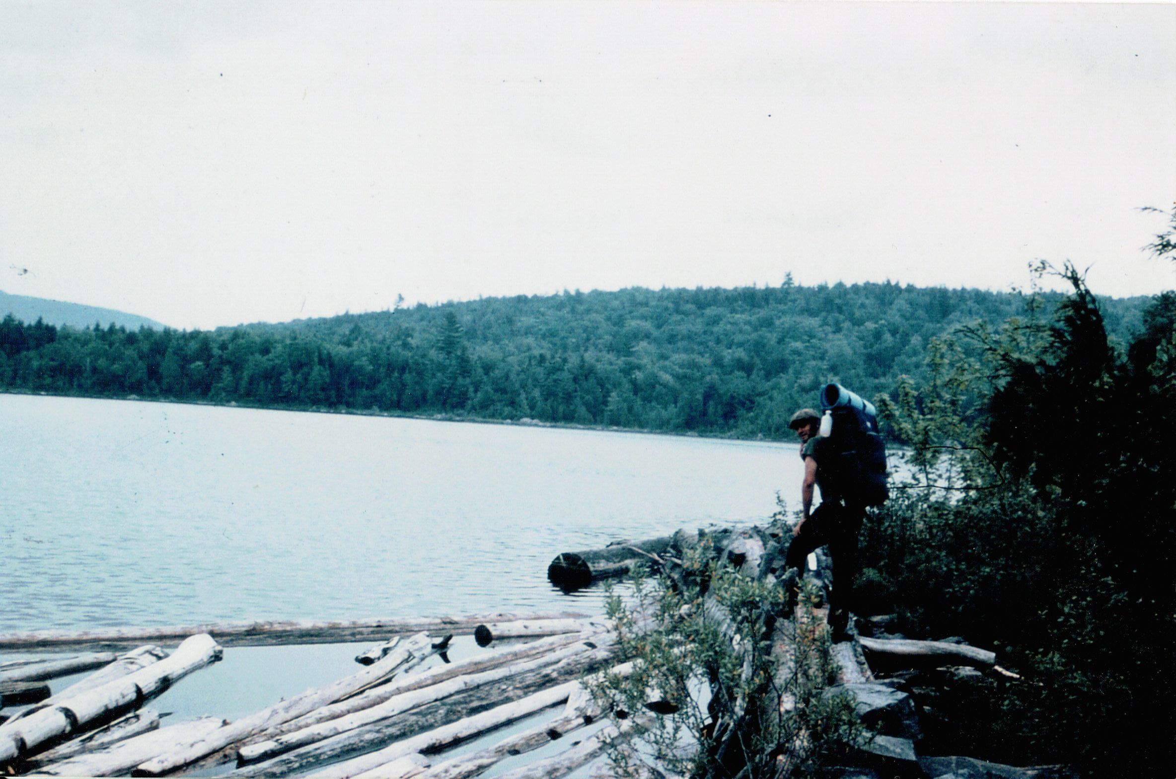 Back in 1973 when I skipped graduation at the University of Georgia to head to Mount Katahdin for a SOBO thru-hike of the A.T., I had great confidence. I had just received a college diploma, so clearly, I was very, very smart. I was so smart that I did very little research and planning and found myself in Maine in early June after a winter of massive snowfall and a spring of torrential rains. The trail was a quagmire, and the air was filled with black flies and swarms of mosquitos so large that I occasionally saw them fly by holding small mammals in their clutches. The photo below depicts my very, very smart self walking across logs on the edge of a north woods lake that was overflowing its banks. The trail was under 18 inches of water. That’s how smart I was. I will give myself credit, however. I kept going and things got better. By October 20, I was proudly striding up Springer Mountain. It can be done, I tell you. So, stay vertical and keep walkin’. (Photo by Bob Bruggman, all rights reserved).