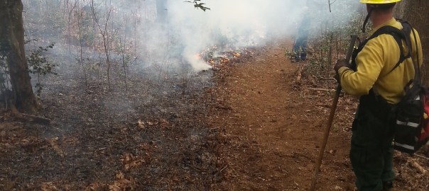 Fire was dangerous in those days half a century ago, and it’s dangerous now. At least most of the time it is. But as you can see from the photo above taken in the Chattahoochee National Forest, experts who know what they are doing can start and control fires to burn underbrush, sticks, logs and stumps in an effort to reduce fuel and mitigate the severity of future unplanned fires in the risky fire season months. At the same time, the residue of fire leaves healthy minerals behind to nourish plants that will emerge from the forest floor in early spring.